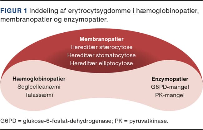 Terminologisk inddeler man de arvelige erytrocytsygdomme efter typen af den genetisk defekt (Figur 1) i hæmoglobinopatier, enzymopatier og membranopatier.