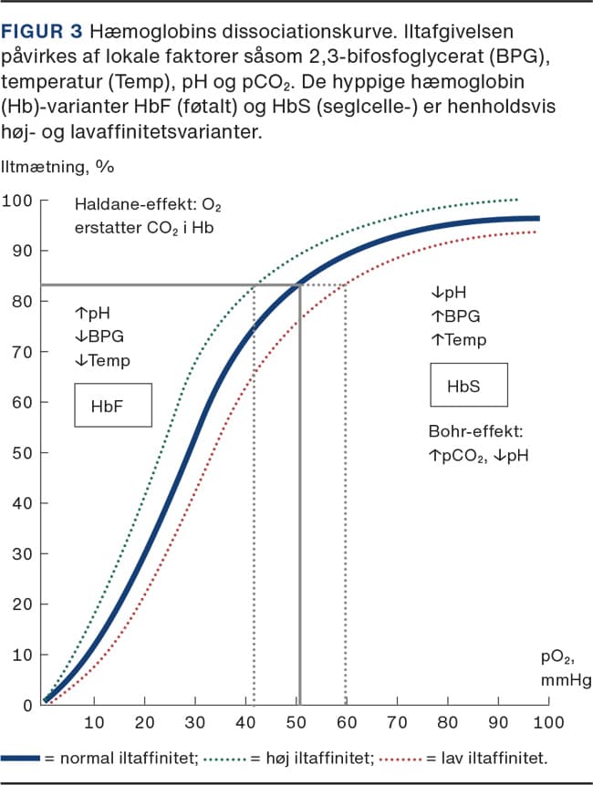 HbS er en lavaffinitetshæmoglobinvariant, dvs. at HbS meget let afgiver ilt til væv (Figur 3). Lav iltmætning af HbS øger sickling, hvorimod øgning af iltaffiniteten hindrer dannelse af seglceller. Voxelotor er Food and Drug Administration-godkendte tabletter, hvor det aktive stof binder til HbS og øger dets iltaffinitet. Fase 3-studiet af voxelotor viste en overbevisende stigning i hæmoglobinniveauet hos patienter med seglcelleanæmi, men desværre ikke en reduktion i antallet af vasookklusive kriser [15]. Mitapivat øger aktiviteten af enzymet PK, hvorved det sidste og ATP-dannende skridt i glykolosen og dermed udbuddet af ATP aktiveres [16], hvilket bedrer erytrocytternes evne til at modstå stress ved seglcelleanæmi. Vigtigere er det nok, at den accelererede glykolyse mindsker niveauet af glykolyseproduktet 2,3-bifosfoglycerat og herved øger HbS’ iltaffinitet.