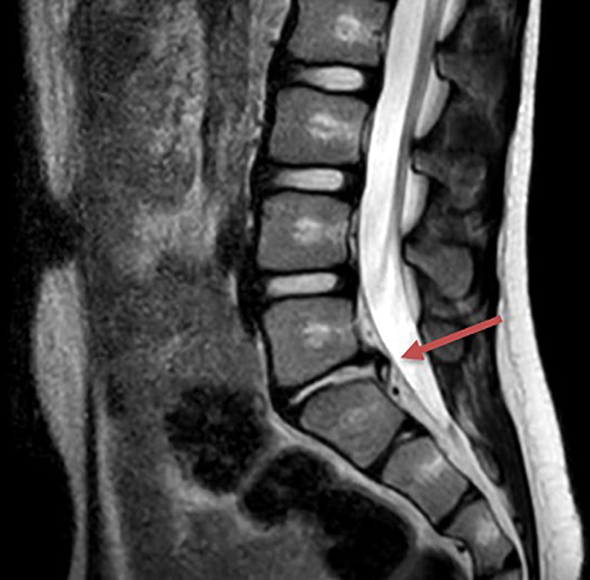 En 11 år gammel rask dreng blev set i en børneafdelings akutambulatorium pga. lændesmerter og indskrænket bevægelighed ved foroverbøjning. Smerterne var opstået 28 dage tidligere uden kendt udløsende årsag. Efter smerteforværring de første to dage blev behandling med ibuprofen forsøgt med god effekt. Smerterne returnerede efter tre uger, nu med udstråling til venstre knæ. Ved en objektiv undersøgelse fandtes bevægelsesindskrænkning i ryggen samt positiv venstresidig Laségues test. I øvrigt sås normale forhold.