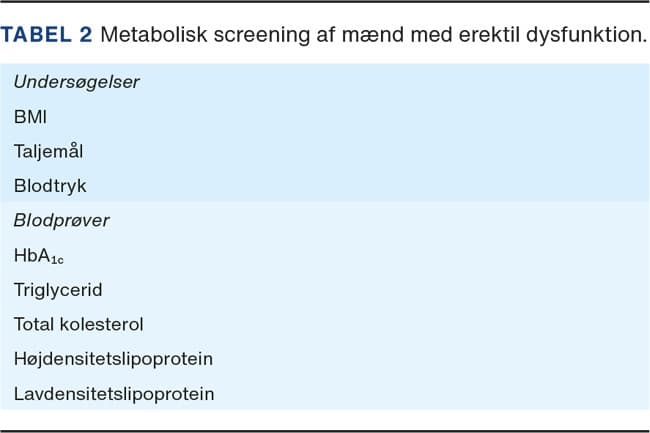 Mænd med erektil dysfunktion bør udredes med BMI, taljemål, blodtryk, HbA1c og lipider.