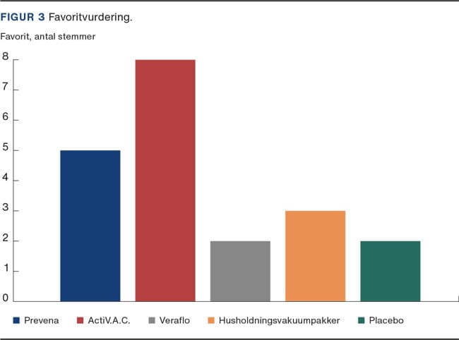METHODS. A pork roast was divided into five pieces and randomised to placebo (no vacuum), golden standard (a household vacuum machine), Prevena, ActiV.A.C. or Veraflo before sous vide cooking. A test panel blinded to the method of vacuuming evaluated the taste, juiciness, and texture, and picked their favourite.