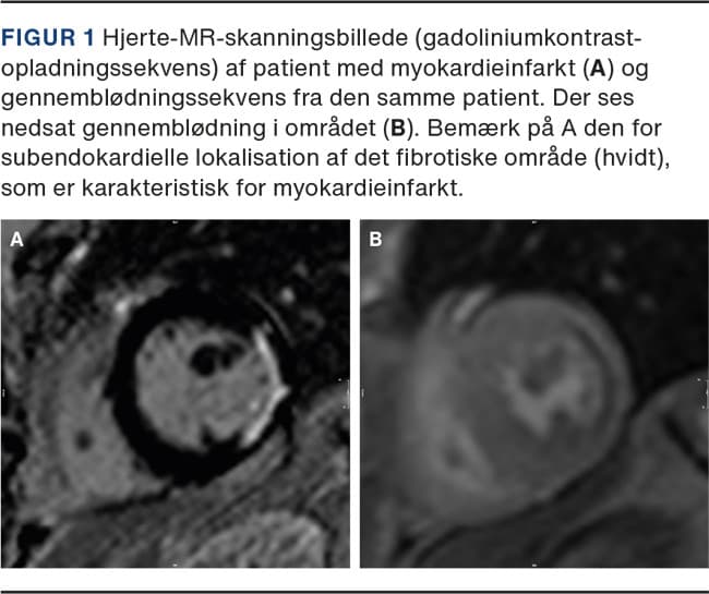 Patienterne havde begyndende tegn på diastolisk dysfunktion med øget E/e’ (gennemsnitligt 9,9 (spændvidde: 8,7-12,6)) hos patienter, der havde T2DM og fibrose, og 8,8 (7,4-10,7) hos patienter, som havde T2DM uden fibrose, og nedsat maksimal fyldningshastighed af LV (peak filling-rate/end-diastolisk volumen i LV gennemsnitligt 2,3/s (standardafvigelse (SD): ± 0,6) hos patienter med T2DM og fibrose vs. 2,9/s (SD: ± 0,6) hos raske kontrolpersoner. Særligt patienterne med fibroseøer har høje værdier af E/e’ og også større LA-volumen og høje værdier af natriuretiske peptider, der i andre studier er påvist at korrelere med udvikling af HFpEF. Det er ofte patienter med lav maksimal myokardiegennemblødning, der også har høj ECV, men en sikker tidsfølge har endnu ikke kunnet bestemmes, og det er stadig usikkert, hvilken af de to fænotypiske manifestationer af T2DM der har størst betydning for senere udvikling af HFpEF. Det synes, som om nedsat maksimal gennemblødning og øget forekomst af fibrose begge påvirker den diastoliske funktion (E/e’), og det synes også, som om fibrose og nedsat gennemblødning gør det ad veje, som er uafhængige af hinanden (nedsat relaksation vs. nedsat LV-diastase). Histologiske studier viser, at AGE-bundet kollagen initialt omskeder de små kar [10], og det er sandsynligt, at det er fibrose, der »kommer først« og nedsætter myokardiets karvitalitet, men hypertension kan i sig selv udtynde kar og give anledning til mindre mængder fibrose [29], og det er derfor lige så muligt, at den relative iskæmi, som denne småkarssygdom nu afstedkommer, giver yderligere fibrosedannelse.