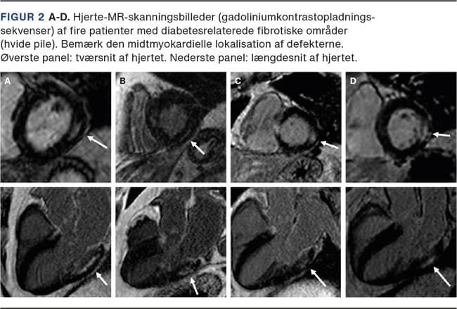 Historisk var det den danske læge Knud Lundbæk, der i 1954 beskrev de særegne diabetiske karforandringer ved DM [22], og det var også Lundbæk, der i 1969 foreslog, at DM måske gav ophav til en egentlig »diabetisk kardiomyopati« [23]. I 1970’erne viste flere mindre patologistudier af patienter, der havde DM og døde med tegn på inkompenseret hjertesygdom, at HF kunne være associeret med stive hjerter med udbredt fibrosedannelse og ophobning af »avancerede glykerede endeprodukter« (AGEs) [24]. Nogle af patienterne have deciderede »øer af fibrose«, der ikke var relateret til IHD [24], idet deres koronararterier var uden signifikant aterosklerose, og fibrosedannelse ved IHD altid udgår fra subendokardiet, hvor de fibrotiske øer hos patienterne med DM var lokaliseret midtmyokardielt. Lundbæk havde altså ret: DM giver ophav til en specifik kardiomyopati, der ikke behøver at være associeret til IHD. Disse studier er i dag vidtgående glemt, men forståelsen af, at DM giver anledning til diffus fibrosedannelse af myokardiet, udtyndede koronararterier (et fund, der også kendes fra koronarangiografier af patienter med DM) og stive hypertrofiske ventrikler, er nu velkendt.